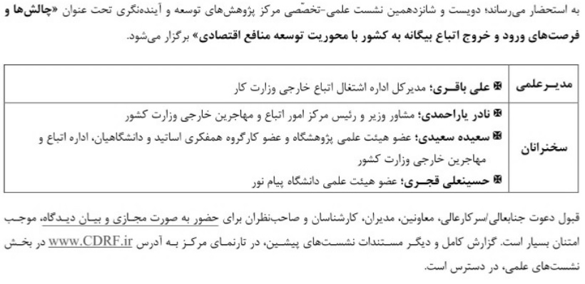 کلیدواژه‌ها: مرکز تخصصی اتباع نشست علمی - تخصصی خروج اتباع