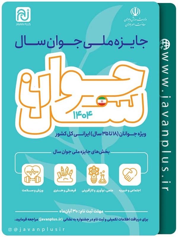 جایزه ملی جوان ۱۷ آبان ۱۴۰۴ | ۱۳:۲۴ کد : ۵۶۱۱۵ اطلاعیه ارسال به دیگران نام شما ایمیل شما ایمیل دریافتکننده ارسال انصراف تعداد بازدید:۱۳۷۸ جایزه ملی جوان سال ۱۴۰۴ فراخوان شرکت در جایزه ملی جوان سال ۱۴۰۴ منتشر شد.