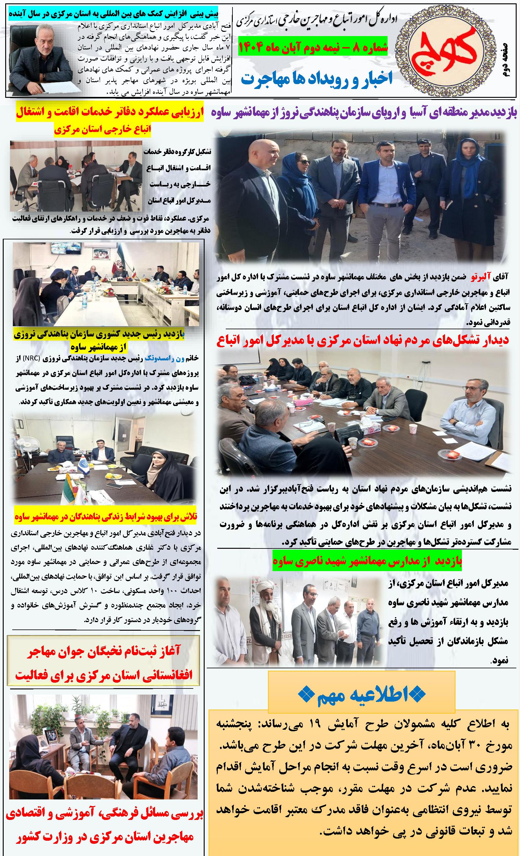 9- اخبار و رویدادهای حوزه مهاجرت استان مرکزی