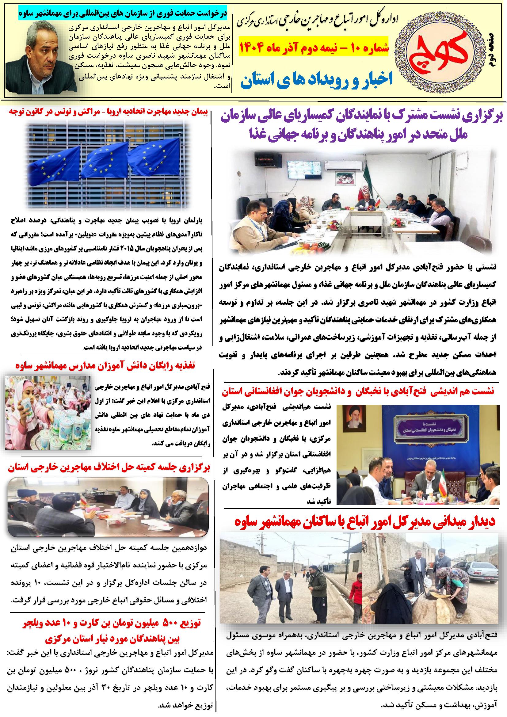 دهمین شماره نشریه کوچ ۰۳ دی ۱۴۰۴ | ۰۹:۲۱ کد : ۵۷۵۲۰ اطلاعیه ارسال به دیگران نام شما ایمیل شما ایمیل دریافتکننده ارسال انصراف تعداد بازدید:۴۲ دهممین شماره نشریه کوچ، توسط دفتر امور اتباع و مهاجرین خارجی استان مرکزی منتشر گردید.