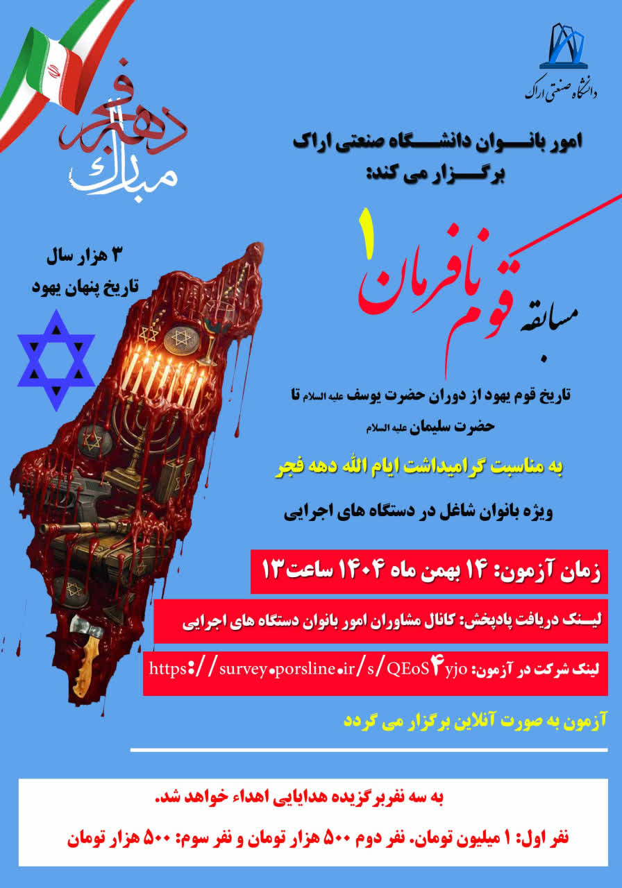 مسابقه قوم نافرمان ۰۸ بهمن ۱۴۰۴ | ۱۰:۳۹ کد : ۵۷۷۴۳ اطلاعیه ارسال به دیگران نام شما ایمیل شما ایمیل دریافتکننده ارسال انصراف تعداد بازدید:۱۱۲ برگزاری مسابقه قوم نافرمان، در ایام الله دهه فجر